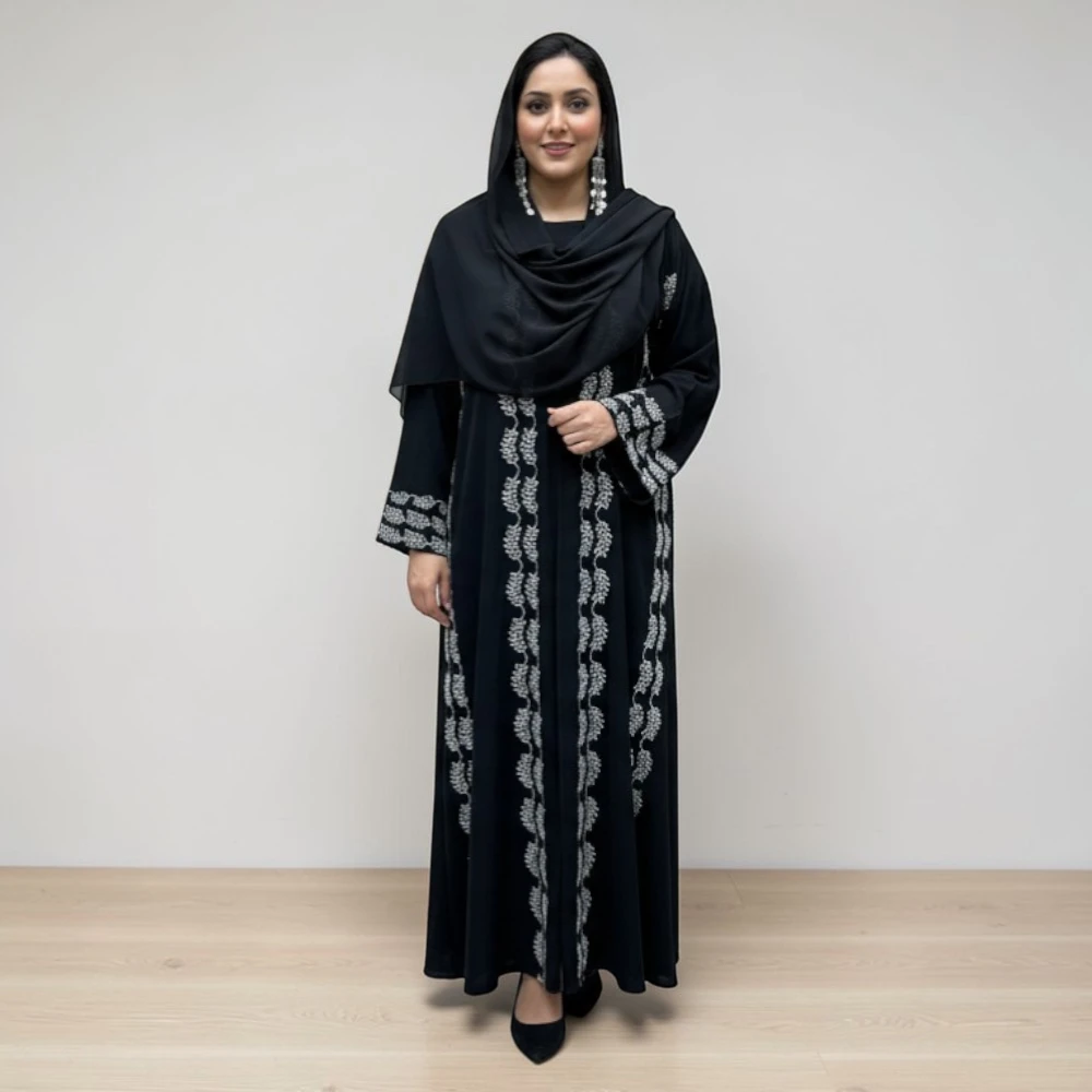 নিউ ডিজাইন প্রিমিয়াম ৩-পার্ট ভাইরাল স্টোন ওয়ার্ক বোরকা সেট – (আলাদা কোটি, ইনার ও হিজাব)